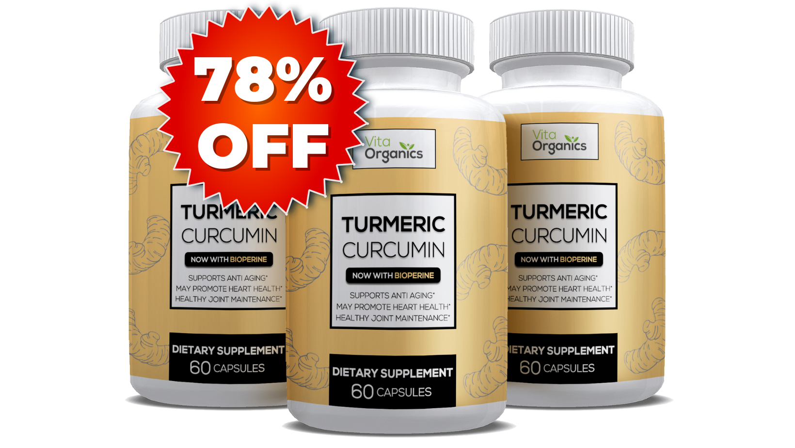 IMPORTANT: We've just been informed Vita Organics is running a 78% off flash sale on their Turmeric Curcumin, so today is your best chance to stock up and save while they're still in stock and on sale.